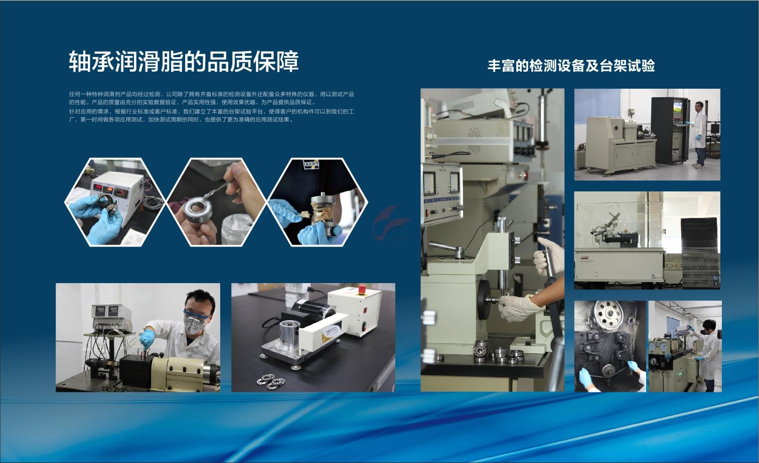 合誠潤滑FAKKT弗克)旗下的任何一種特種油脂,均經過嚴苛的檢測流程,公司除了擁有齊備標準的檢測設備之外,還配備諸多特殊檢測儀器,用以測試產品的性能,以保證輸出的產品優(yōu)質無瑕。質量保障是合誠潤滑FAKKT弗克)給予客戶最基本的承諾,通過充分的數據驗證,合誠潤滑FAKKT弗克)的特種油脂產品具備超高實用性能,使用效果優(yōu)越。而為了針對不同客戶的應用需求,合誠潤滑FAKKT弗克)根據行業(yè)標準或客戶標準,建立了豐富的臺架試驗平臺,使得客戶的機構件到達工廠時可以第一時間做各項應用測試,這在加快測試周期的同時也為客戶提供了更為準確的應用測試結果。