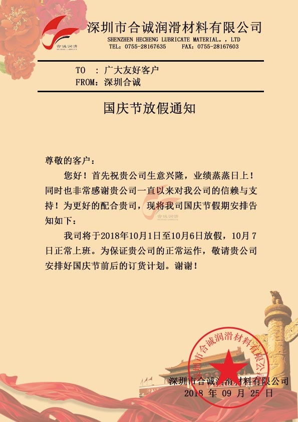 深圳合誠2018年國慶放假時間
